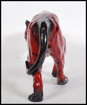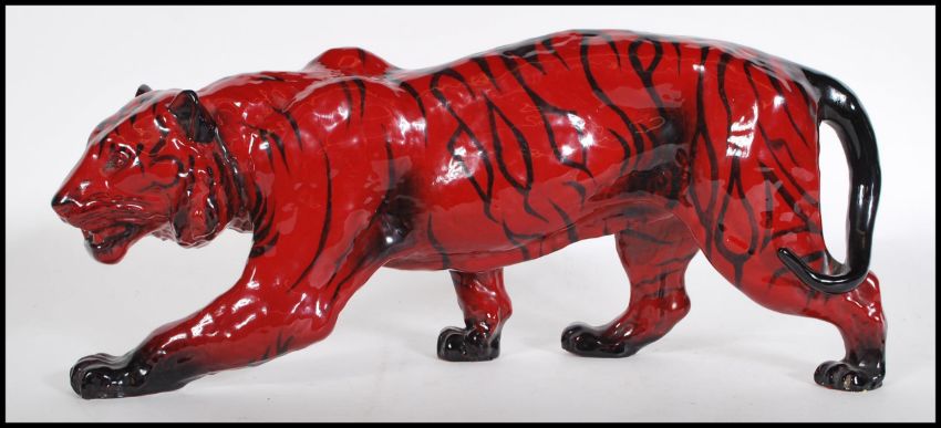 Tiger Stalking HN.1082 Royal Doulton Flambe model of a tiger designed by Charles Noke, modelled walking, glazed flambe red