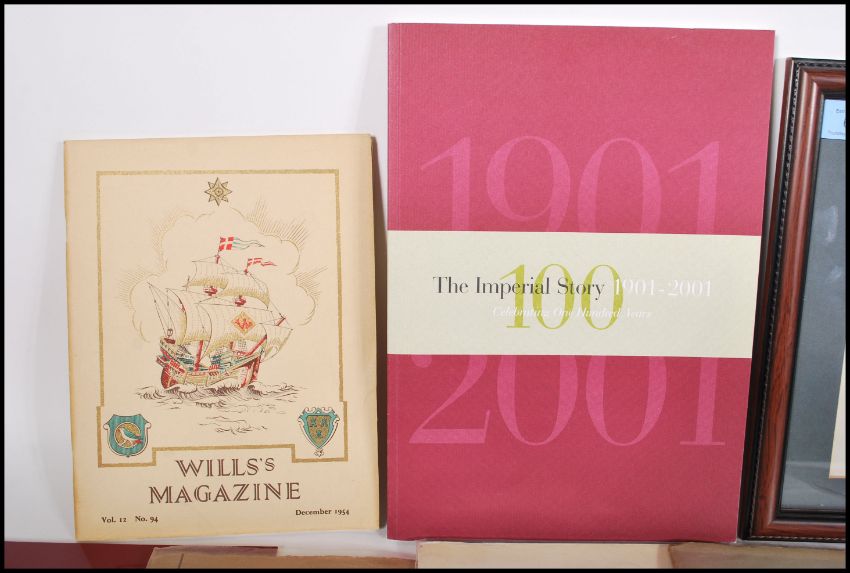 Local interest- A collection of 20th Century tobacco related ephemera mostly for Wills cigarettes to include Tobacco its Culture and Manufacture with the compliments of W.D & H.O.Wills, The Cigar booklet, The Imperial Tobacco Company of Great Britain and Ireland Limited 1901-1951, John Players and Sons Centenary 1877-1977, Wills's Magazine vol. 12 no. 94 December 1954, The First Sixty Years by Sue V. Dickinson history of the Imperial Tobacco Company hardback book, John Players From Plantation To "Players" book, Tobacco and its associations with Bristol Wills, framed and glazed leaflet for Player's Please having notation to verso and more.