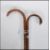 Two early 20th Century walking stick canes having crook handles with silver tips and collars. One being blackthorn with brass ferrule and the other having a bamboo shaft and brass ferrule. Both having continental rubbed hallmarks to the engraved decorative collars . Longest measures 95cm long.