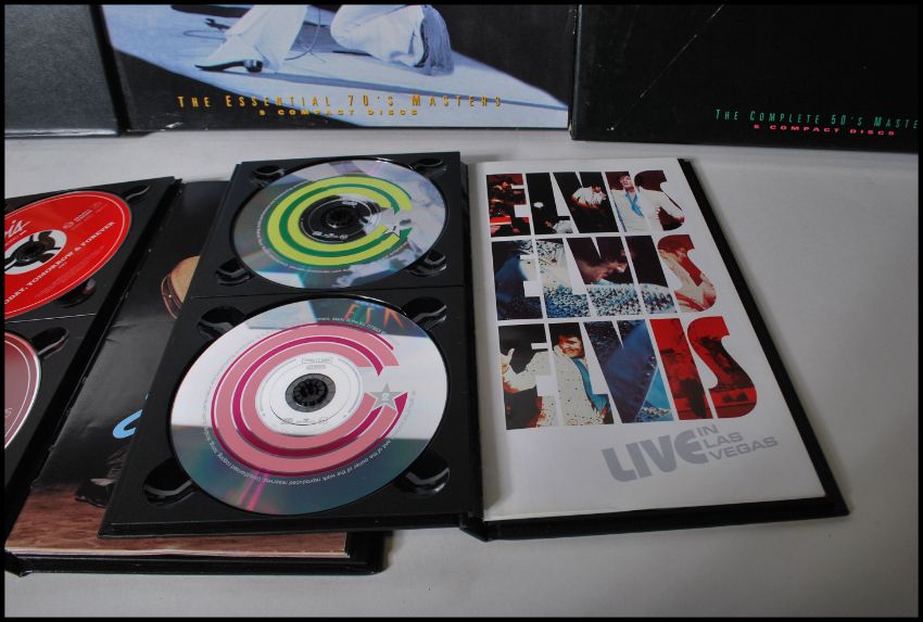A collection of Elvis Presley collector music box sets on compact discs / CD. The sets to include Collectors Gold, Walk A Mile In My Shoes, The King Of Rock 'N' Roll, His Life And Music and From Nashville To Memphis.