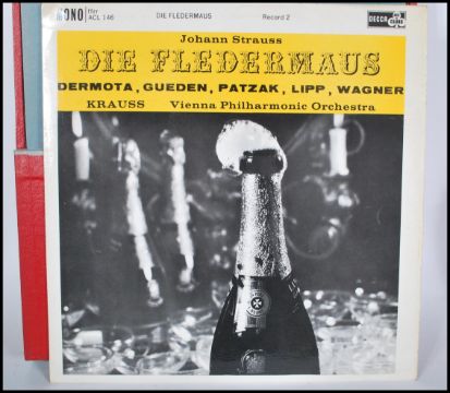 A collection of classical vinyl long play LP vinyl record albums from various artists contained with in four cases, to include composers Beethoven, Puccini, Wagner, Mozart, Verdi, Strauss, Gilbert and Sullivan etc. On various labels.