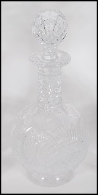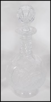 A collection of  20th century mixed cut glassware to include four Stuart Crystal glasses, Waterford Crystal, a decanter having label for Ajka Hungary, glass trinket box, floral etched glasses, square decanter having mark to base etc. Tallest measures 25cm tall.