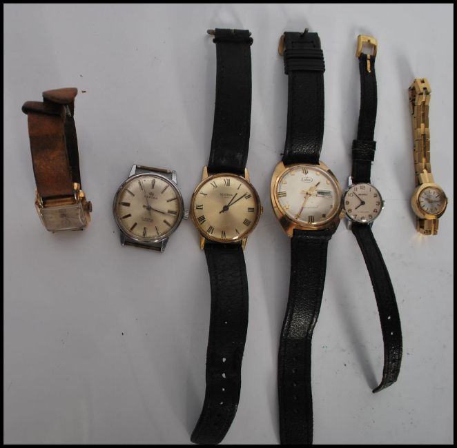 A collection of six vintage mens and ladies wrist cocktail watches to include Sekonda, Lancyl, Eden, Ingersoll, Perona, Rotary.