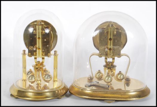 A good quality Kern Anniversary clock having brass movement and ceramic dial  set within a glass dome together with another Anniversary clock in dome by Bentima.