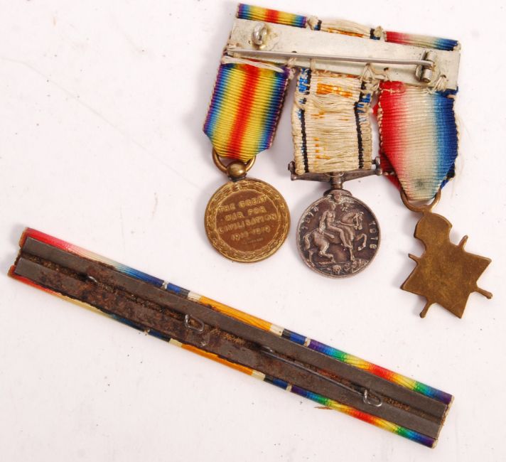 An original WWI First World War medal group trio awarded to a 48385 / 48285 Corporal Joseph H Cleverdon of the Royal Army Medical Corps RAMC. Comprising: War Medal, Victory Medal and 1914-1915 Star. 48285 impressed to side of War Medal and Victory Medal but 48385 to verso of Star Medal (both listed correctly as per war records). Complete with ribbons,  medal bar and miniatures. Consigned from family.