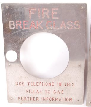A collection of x3 vintage 1960's / 1970's Emergency Telephone steel notice signs, likely removed from telephone boxes or similar. x2 reading ' Emergency Telephone - Police, Fire, Ambulance - To Call Assistance - Pull Open, Lift Receiver And Wait Reply - The Reliance Telephone Co. Ltd '. Labelled as ' Box No. 13 ' and ' Box No. 9 ' respectively. The third sign being a ' Fire - Break Glass ' version. All approx; 28cm x 20cm.