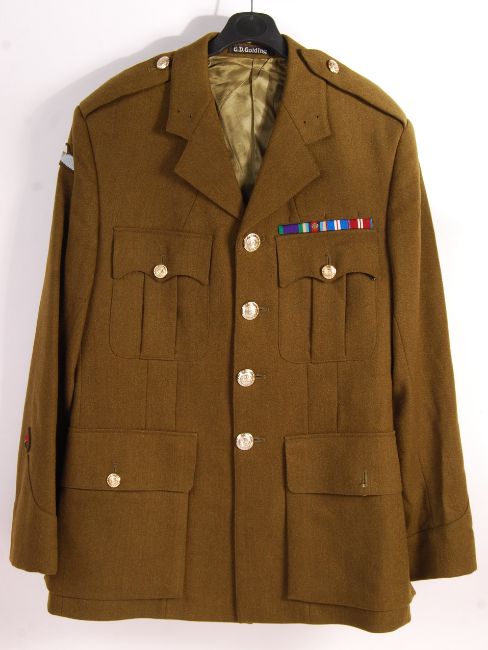 A contemporary (likely 1990's) Parachute Regiment uniform jacket. Made by GD Golding. Insignia for Parachute Regiment to arm and polished buttons allover. Quality British uniform.