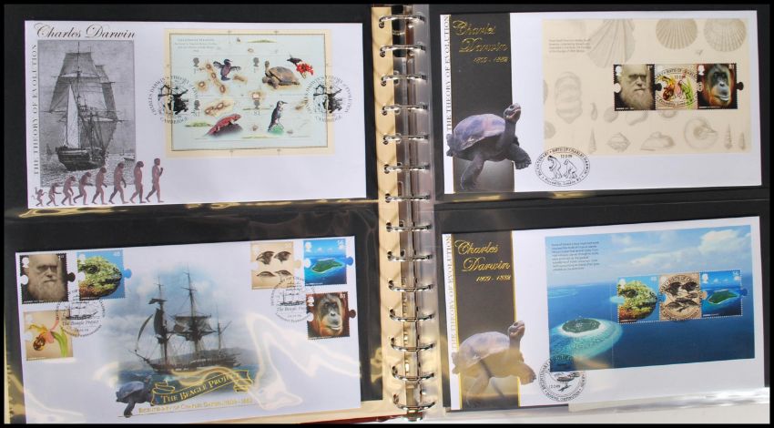 Stamps - A large collection of Guernsey and Great British first day covers across eight albums to include music, Navy, Battle of Britain covers including a 10th anniversary edition with a commemorative medal, Royalty, Guernsey post, military, trains, etc.