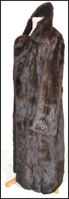 A vintage 20th Century ladies full length fur jacket possibly mink, deep collars and cuffs, no makers labels.