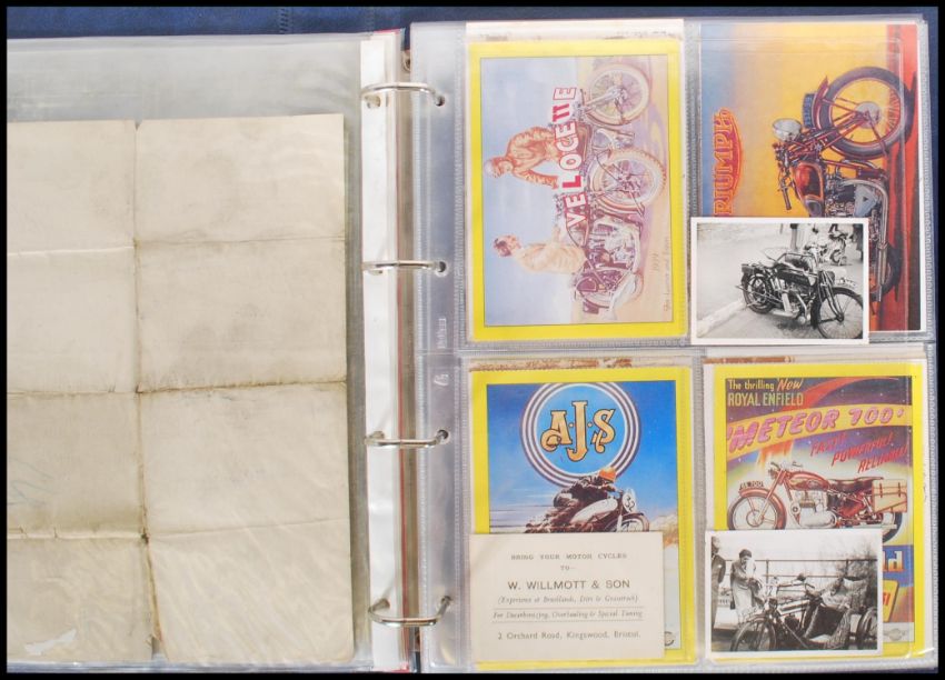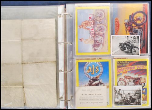 MOTORCYCLING - Collection of postcards (69) showing motorcycles. Also vintage ephemera (inc Douglas of Kingswood) and some photos