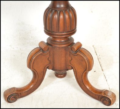 A Victorian 19th century mahogany revolving piano stool. Raised on a splayed leg base, with turned column having overstuffed blue velour seat. Measures 52cm x 38cm.