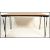 A retro style metal framed plank top dining table raised on hairpin upright supports in a black colourway together with a set of four plastic moulded DSW style dining chairs.