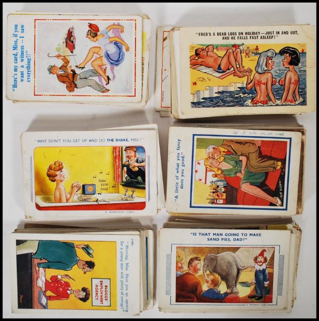 A collection of mid 20th Century/ 1950's vintage novelty comical postcards including designs by Donald McGill, Trow, Dudley, Milla, Pedro, Taylor etc. Over 100 in total.