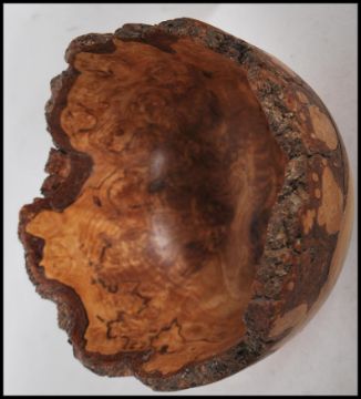 A collection of 20th Century treen items to include a burr walnut trinket bowl having a cast pewter coin USA five cents to the base with a Native American bust to the base, a cast metal Native american bust figurine, a Burr walnut bowl and a carved wooden ornament marked to the base 'carved from an ash remnant used to make a replacement body Longeron on 15/98 Aston.