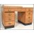 A 1930's Art Deco oak twin pedestal office desk. Raised on ebonised plinths with banks of drawers to each pedestal. Above, further drawers beneath desk top with gallery surround. measures 77cm x 123cm x 77cm.
