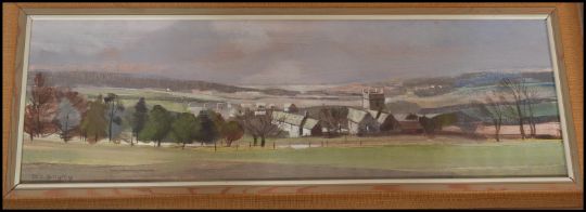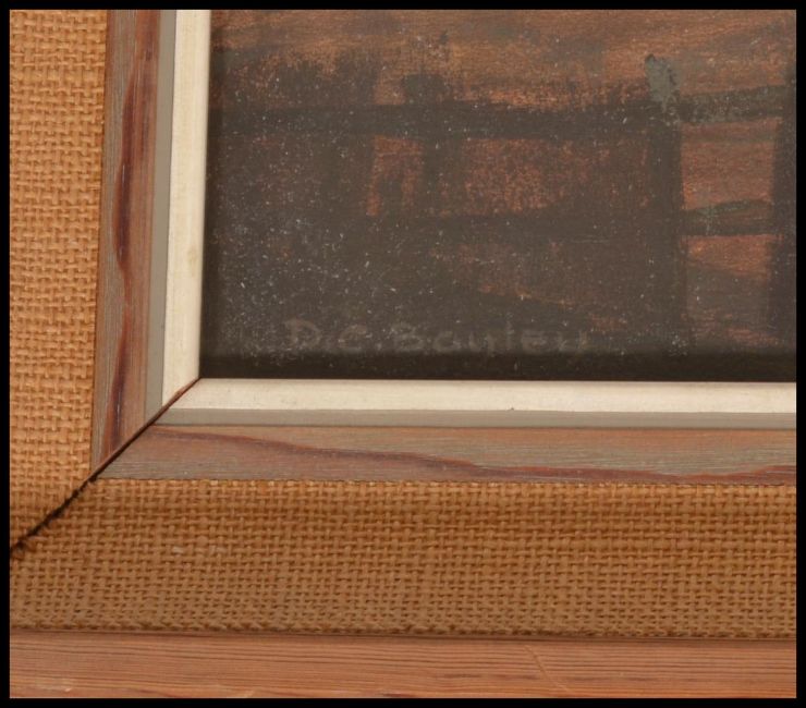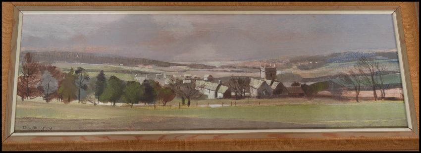 A collection of four 20th Century framed oil on board paintings by D.C. Bayley, the images to include Alfriston Church, Sussex, two of Exmoor and Stokesay Castle. All signed to corner.