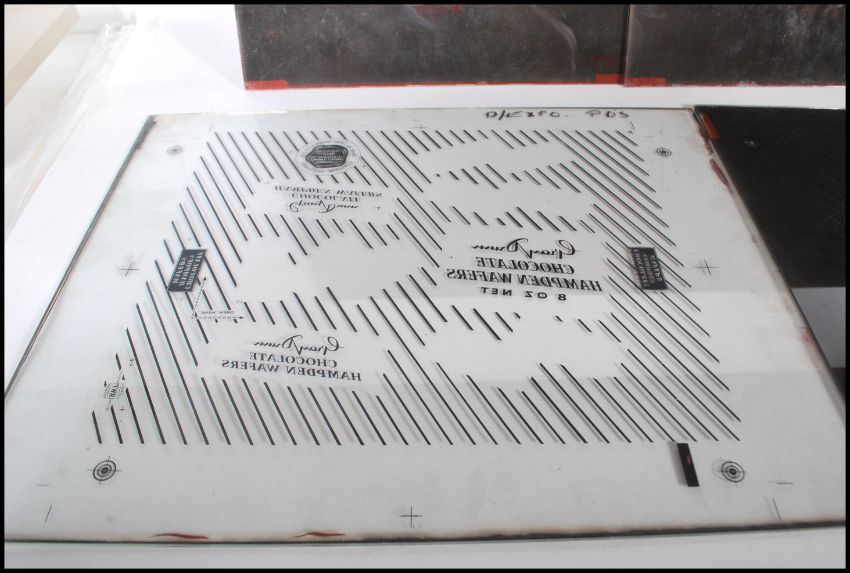 A collection of large vintage retro advertising glass plates, the plates advertising for biscuits to include Gray Dunn Chocolate Hampton Wafers etc.