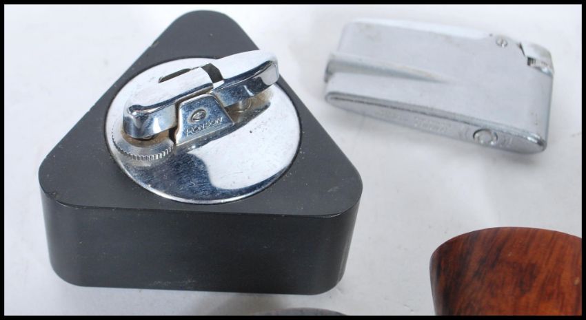 A collection of vintage 20th Century smoking pipes and paraphernalia to include Briar pipes by  Cranbourne, Apollo Bruyere etc, lighters to include Ronson, a vintage BMW lighter etc.