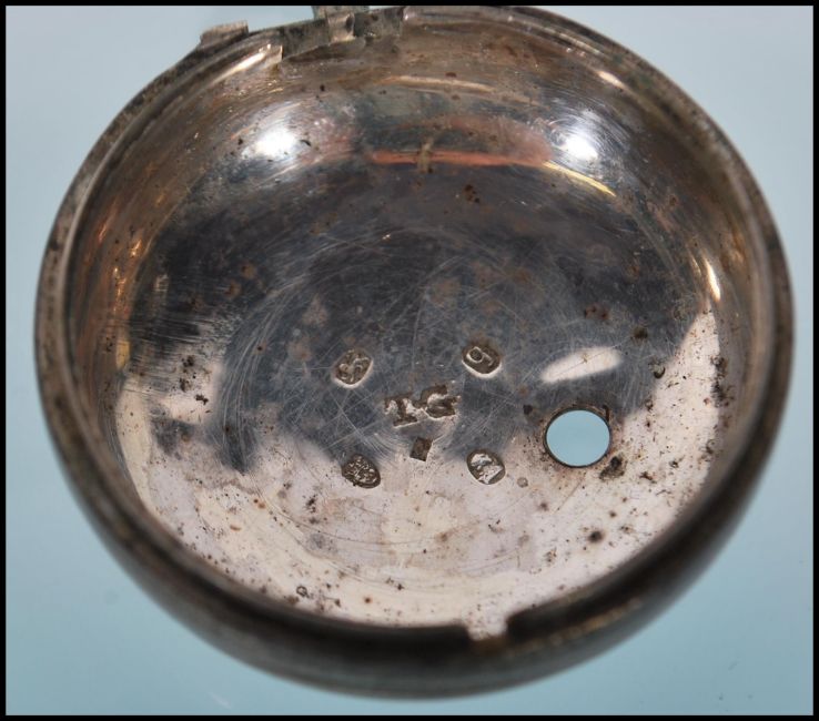 A late 18th century E Dunning of London chain fusee pocket watch. Silver hallmarked case believed 1791 with sponsors mark for Thomas Gooch. Porcelain face with arabic numbers and faceted hands. Complete with the outer case having matched hallmarks to the above. Total weight 114.73g