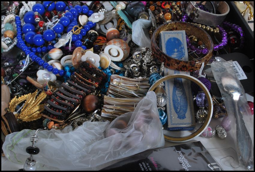 A collection of costume jewellery to include necklaces, pendants, bangles, bracelets, earrings with some housed in jewellery boxes. Together with a small selection of ladies purses with beaded example.