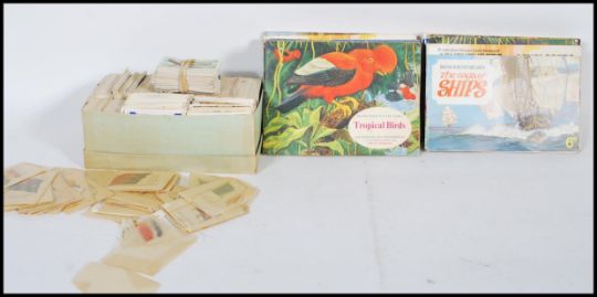 A collection of vintage Brooke Bond tea cards to include a section of themed picture card albums and a selection of full and part sets; tropical birds, famous people, wildlife in danger, wild birds in Britain along with a selection of Kensitas silk cigarette cards of the British Empire flags.
