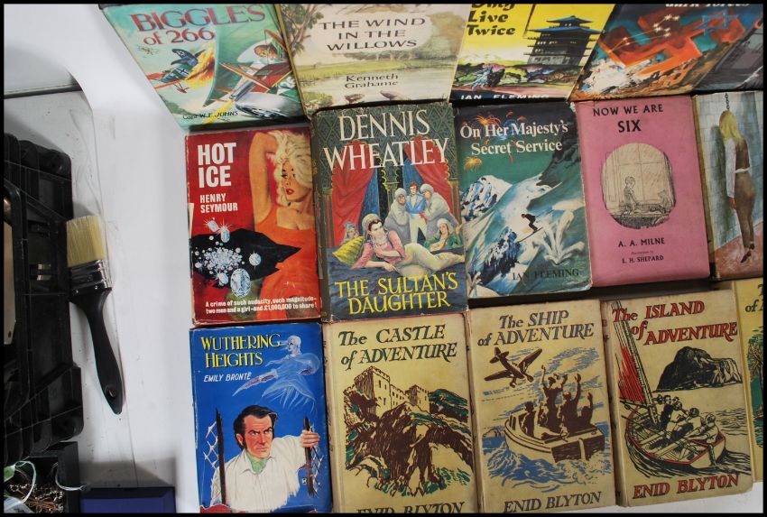 A selection of vintage books to include multiple Enid Blyton ( The Ship of adventure, The Castle of adventure, The Valley of adventure, The Island of adventure etc), Black Beauty, The Wind in the Willows, You only live twice, Hot ice, The sultan's daughter, Biggles of 266 and more.