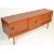 A Danish inspired mid century teak wood sideboard credenza. Of low and wide construction having a series of sliding doors enclosing shelving within. The facia's with roundel handles and detailing. Measures 72cms high x 182cms wide 42cms depth