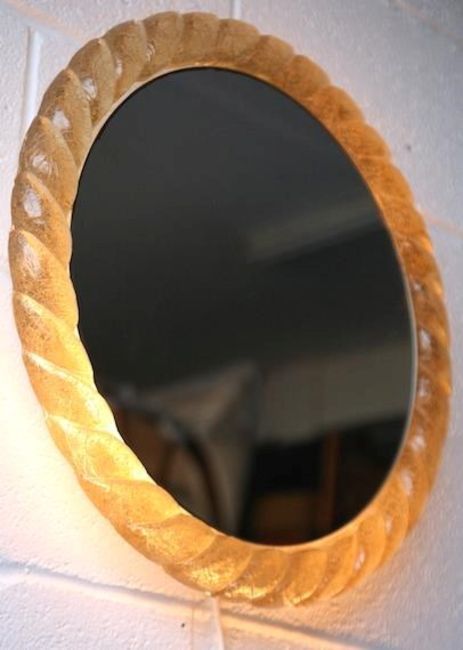 Hillebrand - A 1960's retro vintage round illuminating vanity wall mirror having a textured lucite platted surround and metal back plate with three bulb holders. Measures; 51cm diameter.