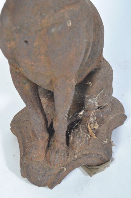 A 19th century Victorian cast iron garden sculpture of a dog / greyhound whippet being in the seated position. Unmarked, the item having been within the vendors family for 50+ years. Meaures 49cm
