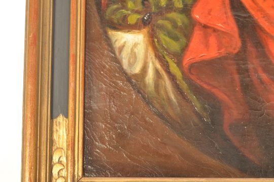 A Swedish 17th Century oil on canvas painting - portrait study of Maria Christina Hammanfelt ( Born 1690 - 1768 ). The painting with further notation mentioning husband of overjagmastare ( park ranger ) Johan Petersson Stiernspetz. Set within a gilt wood frame and relined in 1941 by Brita Juel Soop (1900- ). Frame measures 74 cm x 92 cm - canvas 59 cm x 76 cm.