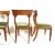 A set of 6 19th century Regency mahogany bar back dining chairs. Raised on Octagonal tapering legs with overstuffed velour upholstered seats with bar  back rests / top rails having detailed fluted carved upright supports. Measures 83cms x 50cms x 43cms