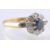 A  hallmarked 18ct gold sapphire and diamond cluster ring. The ring having a central round mixed cut sapphire surrounded by illusion set diamonds. Completed by sapphire set shoulders . Hallmarked London. Weight 3.9g. Size M.5