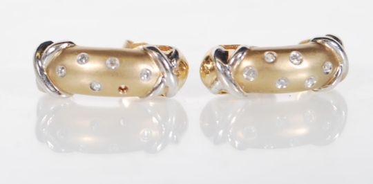 A pair of 18ct yellow and white gold and diamond earrings of crescent shape complete with posts. Total weight 3.2g