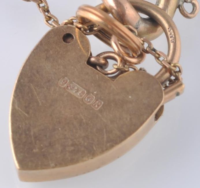 A hallmarked 9ct gold curb chain bracelet. The bracelet having a heart lock and large chain links. Hallmarked Birmingham. Weight 41g. Measures 7 inches.