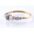 A hallmarked 18ct gold sapphire and diamond three stone ring. The ring set with a central round mixed cut sapphire flanked by two illusion set diamonds, with steel cut shoulders. Hallmarked Birmingham. Weight 3g. Size S.
