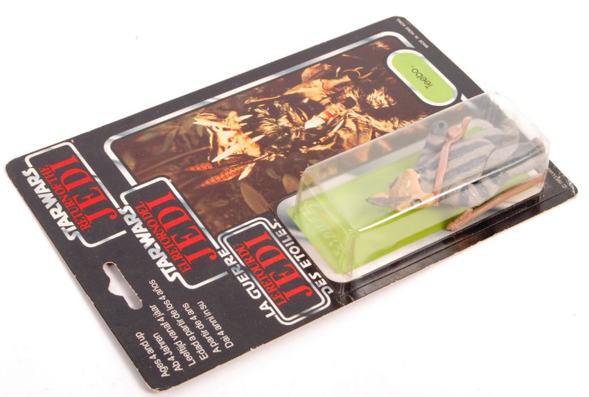 An original vintage 1983 Palitoy made Star Wars carded MOC action figure ' Teebo '. Factory sealed upon it's original 79 back tri-logo Return Of The Jedi card. The bubble with no splits. Card back generally excellent. Rare.