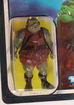 An original vintage 1983 Kenner made Star Wars carded MOC action figure ' Gamorrean Guard '. Factory sealed upon it's original 65 back Return Of The Jedi card. The bubble with no splits or dents, the card back good, with just minor veining around hanger. Great example.