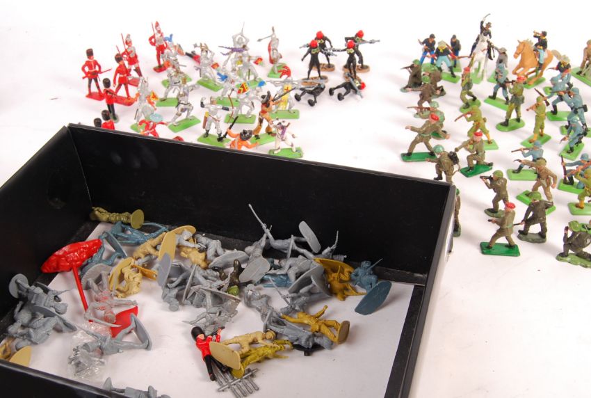 A good large collection of 100+ assorted toy / model soldiers. Largely Britains Deetail soldiers (German and British), but some others included - Britains Super Deetail, Britains Space, and others. Great selection.