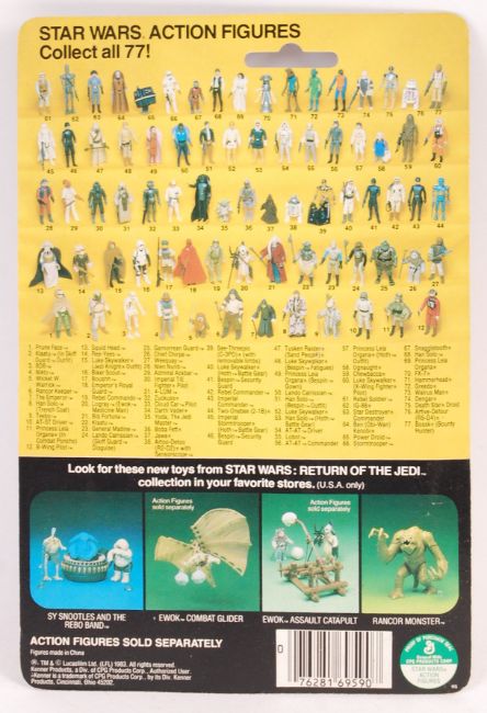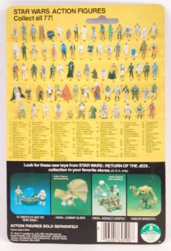 An original vintage 1983 Kenner made Star Wars carded MOC action figure ' Stormtrooper '. Factory sealed upon its original 77 back Return Of The Jedi card. Fully factory sealed, with weapon still taped in place. The bubble with minor crushing, and the cardback flat and mint to mint+ (very minor veining to reverse). Generally an excellent example.