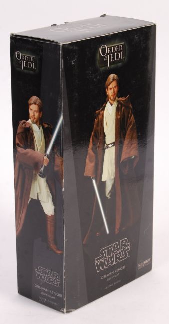 A rare Sideshow Collectibles made 1/6 scale ' Order Of The Jedi ' action figure ' Obi-Wan Kenobi - Jedi Knight '. Appears mint and unused, within its original display box. Incredibly highly detailed figure, with accessories. Rare.