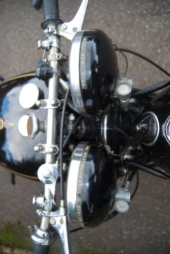 A stunning example of a Vincent Black Shadow motorcycle. 20,000 genuine miles, and fully registered with the Vincent Owner's Club. Matching frame numbers, and also matching casing numbers. Fitted with all the period extras - a hand operated centre stand, a rev counter, electronic ignition, uprated carbs, electric start, and very expensive rare four leading shoe brakes.