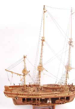 An original vintage 20th century scratch built model of " The HMS Bounty 1783 ".. Highly detailed museum quality with cut out section revealing interior cargo compartments and crew chambers. Some minor details may be missing / broken. Raised on wooden stand with notation plaque. Fantastic model. Measures: 80cm high x 93cm long.