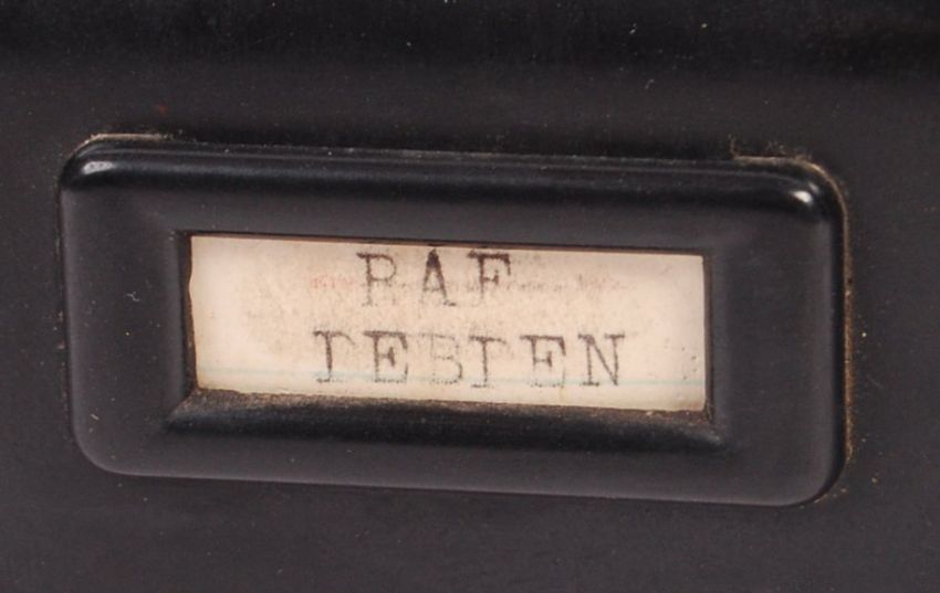 A rare original WWII Second World War Operations / Ops RAF Royal Air Force bakelite Ops Room telephone. From RAF Debden in Essex. The black ring-dial phone, with original cord and small ' RAF Debden ' typed note to front. Rare example.