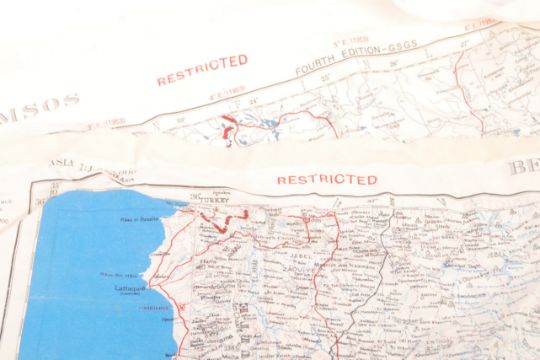 A collection of x4 original vintage WWII Second World War and post-WWII silk RAF ' Escape ' maps. All of the Mediterranean. Each double sided with a different location, and nearly all marked 'Restricted'. Interesting collection.