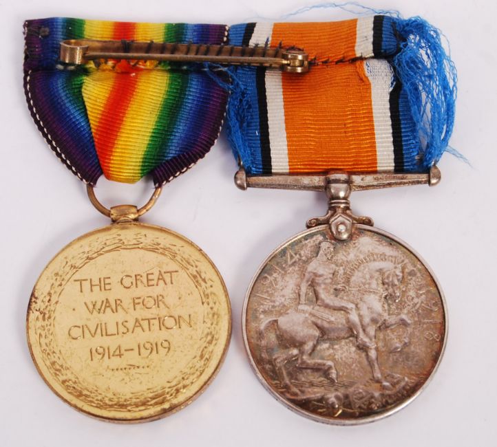 An original WWI First World War medal group awarded to a 41157 Private E Stone of The Royal Fusiliers Regiment. Comprising of War & Victory medal on medal bar.