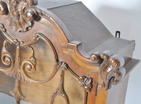 A high Victorian 19th century walnut hanging cabinet. The cabinet with carved, shaped apron having central full sized door with stunning astragal glazing. The cabinet with arched top having stunning carved scroll work crown and further carved detailing to the corners. Measures: 85cm x 86cm x 33cm.