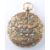 A Victorian 19th century 18ct gold pocket watch case or locket being adorned with tri coloured gold, flat cut garnets and turquoise stones. Complete with bale atop. Size 3.5cms diam / weight 10.25g