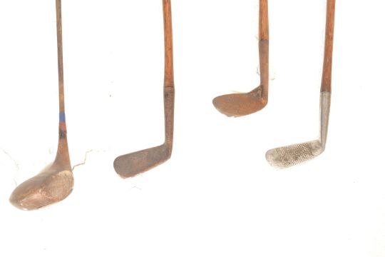 A collection of four vintage early 20th Century golf clubs, three fitted with Hickory shafts to include a Taylor Niblick, a Taylor Machie Autograph etc.