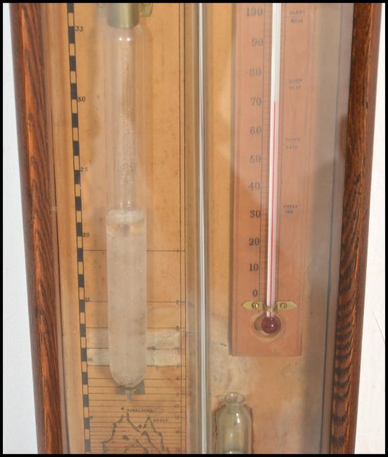 An early 20th century Admiral Fitzroy Barometer/Spirit Thermometer/ Atmosphere Gauge with moveable settings. All within original oak glazed case. Measures
