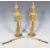 Two late 19th / early 20th Century cast brass soldier figurine bookends both modelled in ceremonial uniforms with feathered helmets, each holding articulated rifles. Measures 28cm tall.